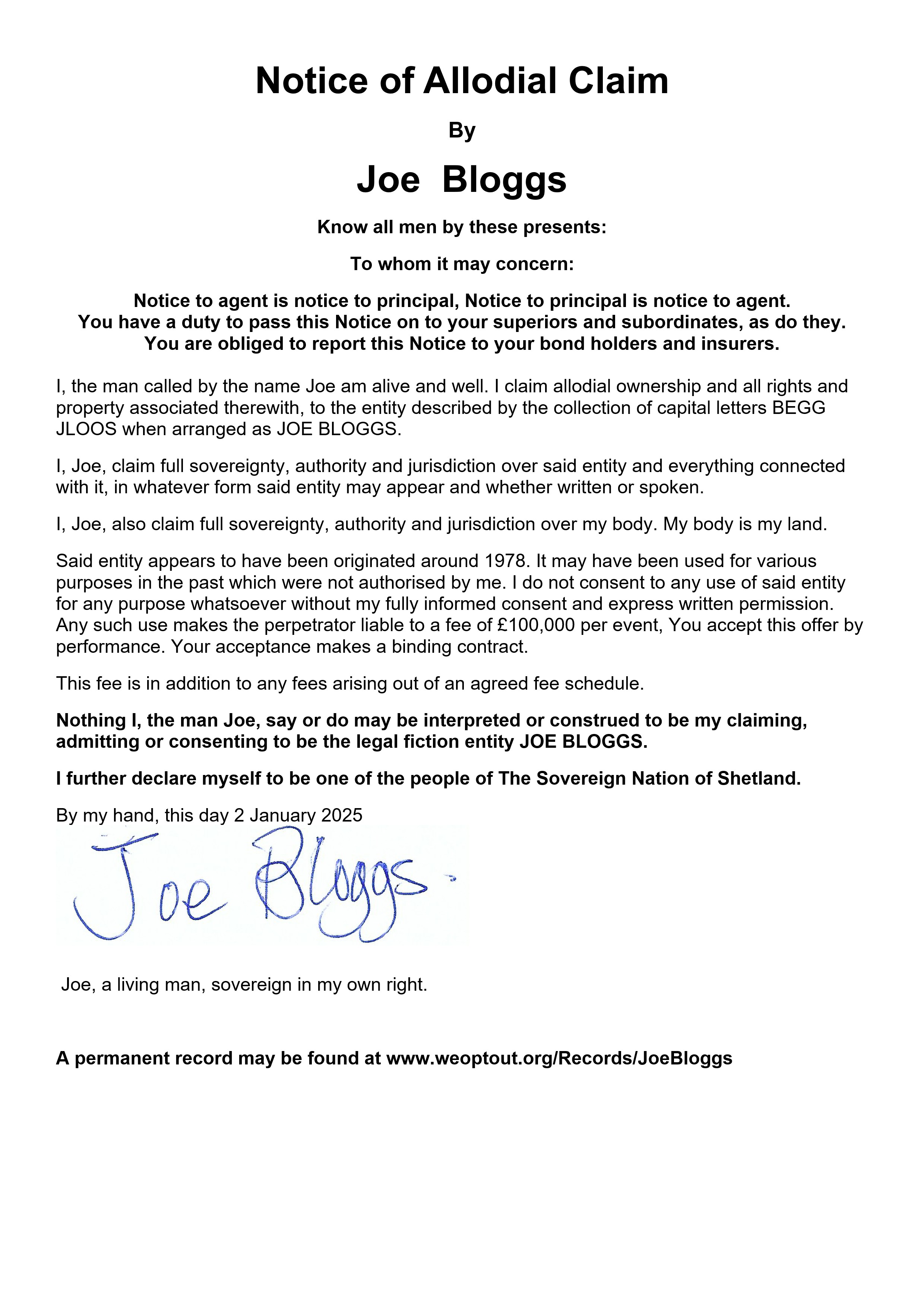 You are seeing this because you have been notified of my claim. If you are viewing this more than 21 days after the date on the document below, you have lost the opportunity to make a superior claim.